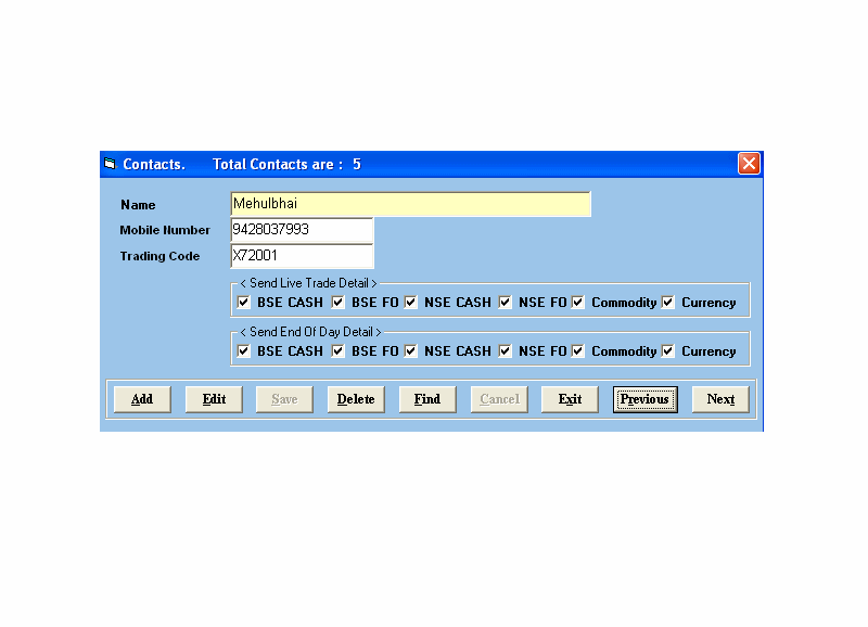 Trade-SMSTrade-SMS Software is very useful to broker as it sends instant SMS to client mobile number which is registered in client KYC master. User can define segment wise message formats and message intervals. We have Integrated following Segments.